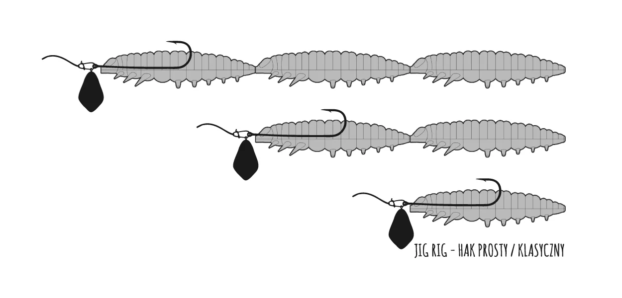 Larva Multi – nietypowa, ale bardzo praktyczna i z racji swojej budowy także niezwykle uniwersalna przynęta, którą zbudowaliśmy dzięki połączeniu ze sobą pięciu malutkich, 25 mm LARV. Dzięki temu, że do Waszych rąk oddajemy cały „wianuszek” robaczków, to Wy sami podejmujecie decyzję, jakiego wabika aktualnie potrzebujecie. Pojedyncza, malutka LARVA, z pewnością podbije serca łowców białorybu. Podwójna Larva, to prawdziwy killer na pstrągi. Smukły, niewielki, ale jednocześnie ruchliwy i bardzo podatny na najdelikatniejszy nawet ruch wody, czy szczytówki wędki. Jeśli potrzebujecie przynęty bardziej rzucającej się w oczy i o większej wyporności, załóżcie łańcuszek złożony z 3 robaczków. Udanej zabawy!