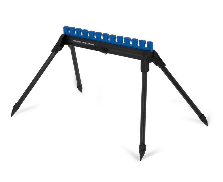 Zaprojektowany z myślą o bezpiecznym odkładaniu topów oraz wędzisk z kołowrotkami, który sprawdzi się w każdym terenie. Wyposażony w cztery regulowane, teleskopowe nogi, wsuwany piankowy grzebień oraz konstrukcję umożliwiającą układanie na płasko. Dodatkowo posiada 10 wypustek na ułożenie wędzisk. Jego zalety z pewnością zostaną docenione przez każdego wędkarza wyczynowego.