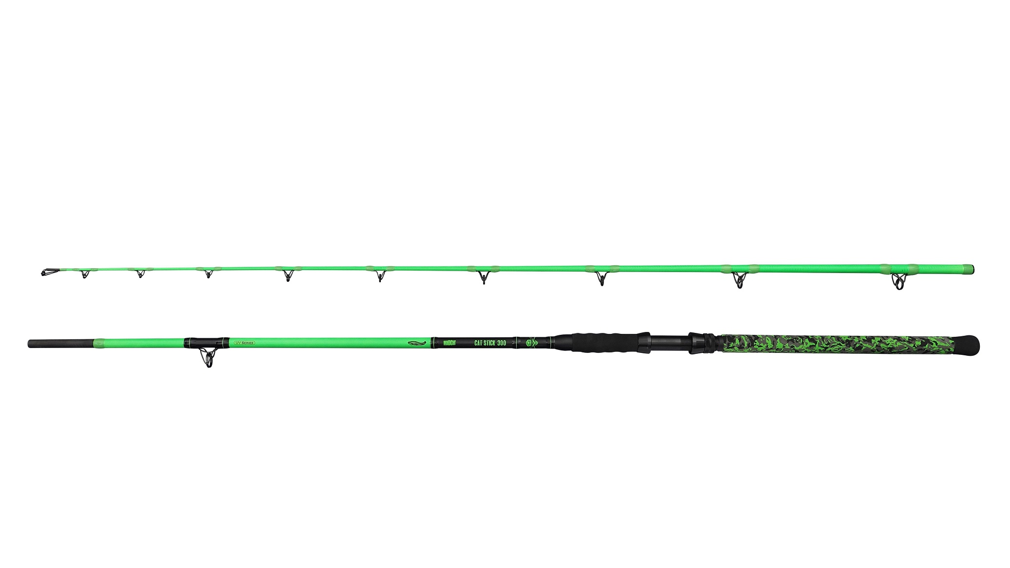 MadCat Wędka UV Series Cat Stick 300cm 300g Wędka sumowa, która wytrzyma każde szarpnięcie suma, wykonana z blanku z włókna szklanego, uzbrojona w oryginalne przelotki…